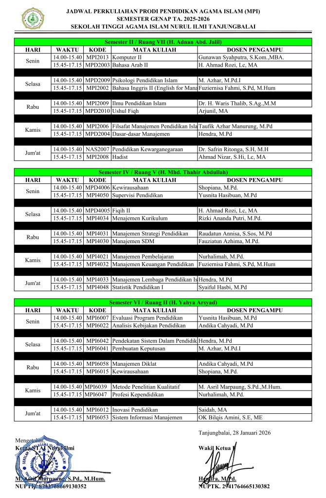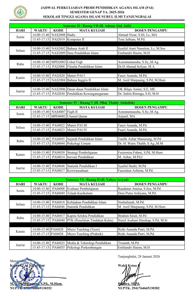Jadwal Perkuliahan Semester Genap T.A. 2025/2026