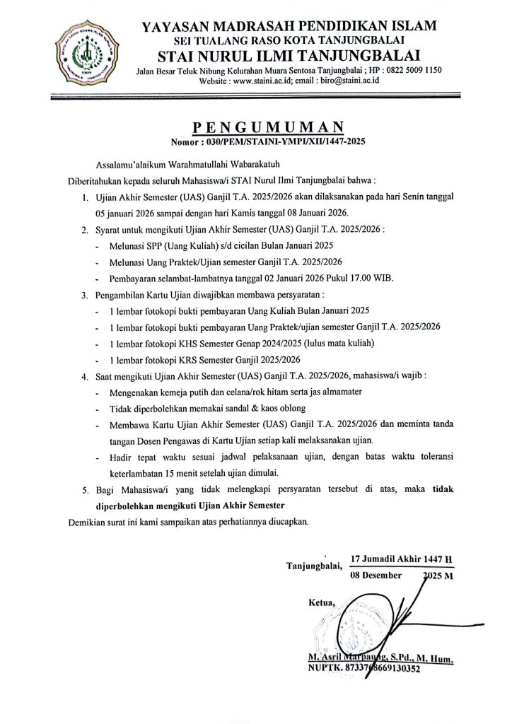 Tanjungbalai – Rabu, 26 November 2025 — STAI Nurul Ilmi Tanjungbalai kembali menorehkan prestasi membanggakan. Sebanyak 13 mahasiswa dari kampus