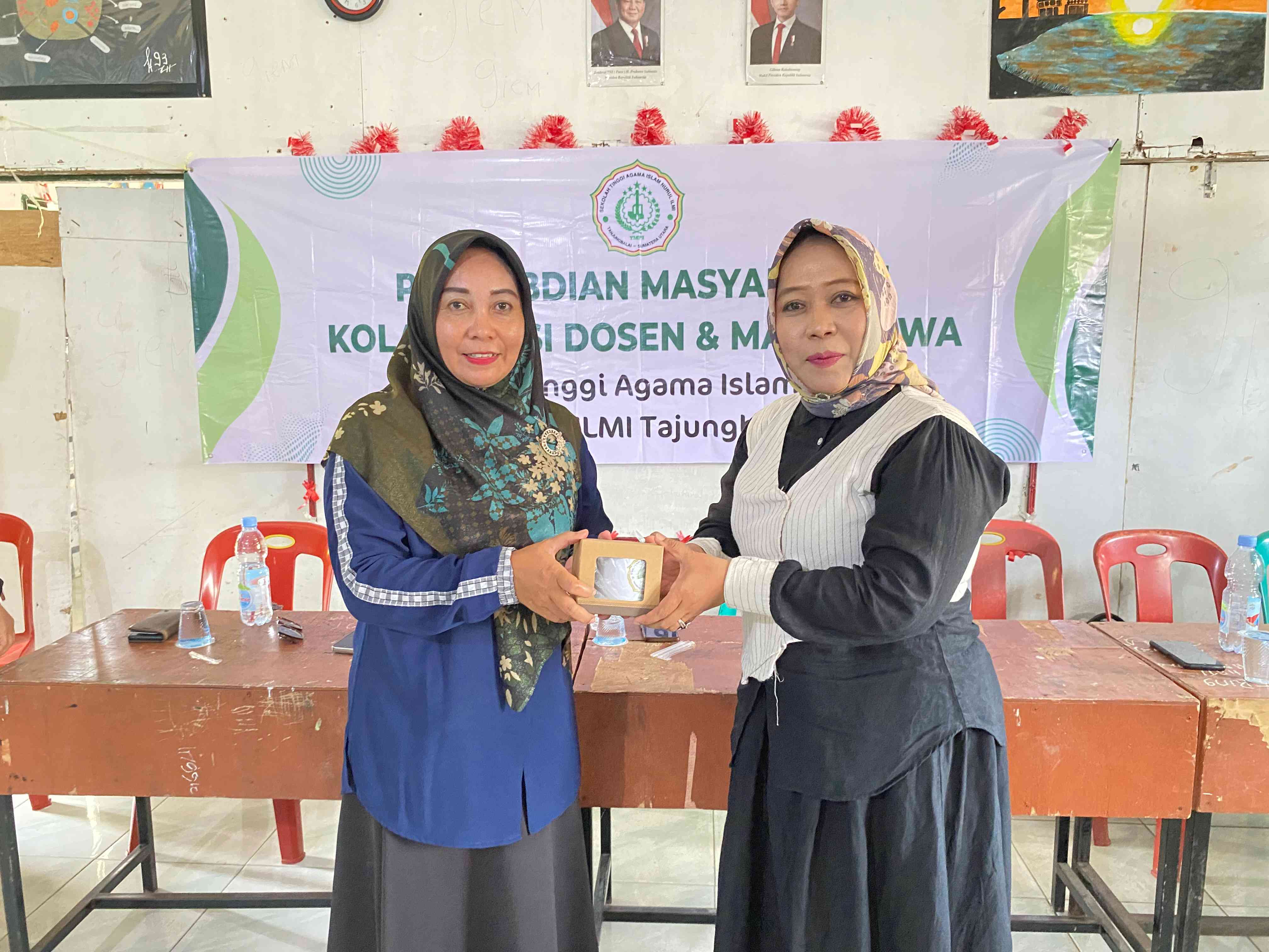 Sebagai bentuk apresiasi dan kebersamaan, rangkaian kegiatan hari kedua ditutup dengan penyerahan hadiah kenang-kenangan yang diwakili oleh Ibu Shopiana, M.Pd. (Dosen STAI Nurul Ilmi Tanjungbalai), penyerahan sertifikat ucapan terima kasih oleh Bapak Emfriandi Hasim, M.H. selaku Ketua LPPM STAI Nurul Ilmi Tanjungbalai kepada Kepala MAS MPI Binjai Serbangan, serta penyerahan hadiah kenang-kenangan kepada siswa MAS MPI Binjai Serbangan yang diwakili oleh Ibu Fauziatun Azhima, M.Pd. (Dosen STAI Nurul Ilmi Tanjungbalai).
